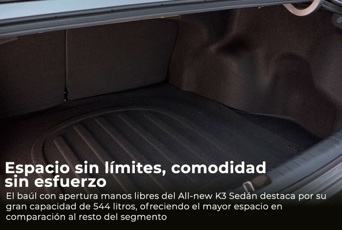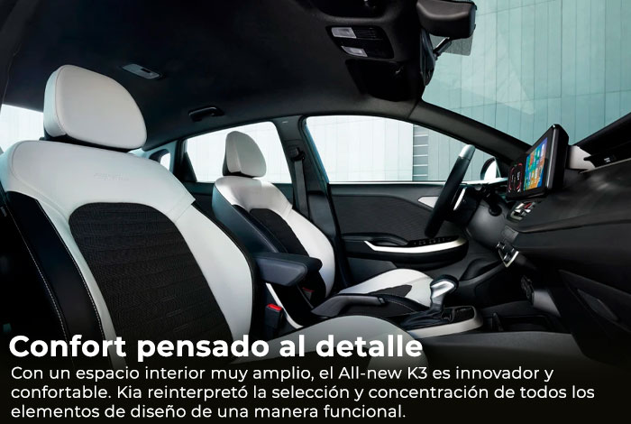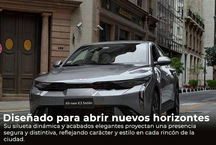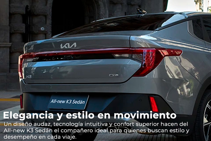 El All-new K3 Sedán combina diseño sofisticado, tecnología intuitiva y un alto nivel de seguridad. Su interior premium y sus asistencias avanzadas elevan cada experiencia al volante.
